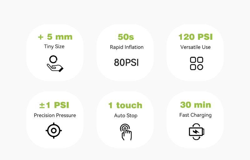 - Small in Size, Big on Power: Equipped with a high-powered 420mAh battery, it can inflate two 700*25C tyres from 0-110psi.